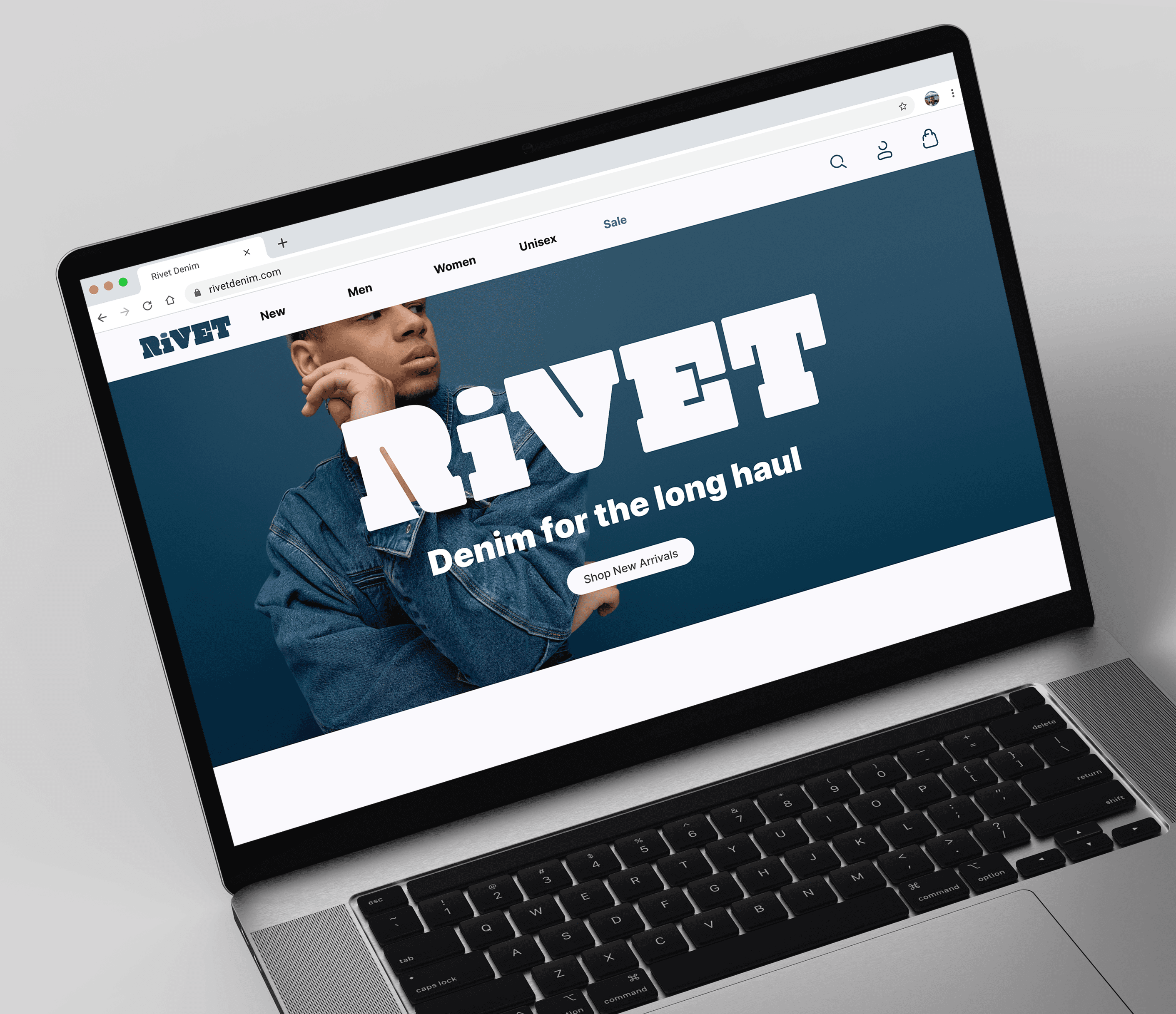A quick visual design practice for Rivet Apparel, a denim-focused clothing brand. Created in Figma.