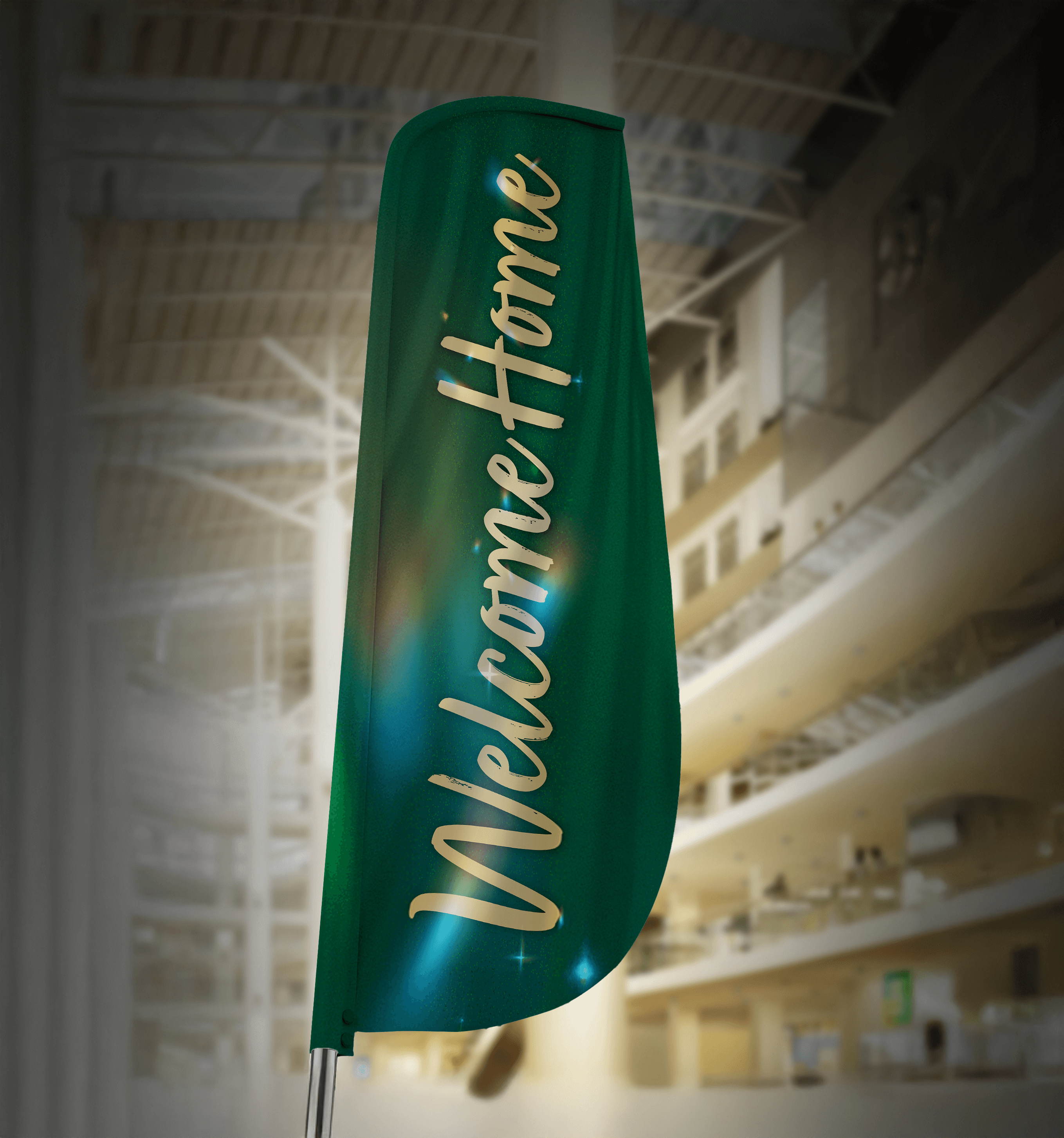 Feather flags and backdrops were designed as environmental elements to shape the emotional tone of arrival. These pieces establish a sense of occasion and belonging at the point of entry. The vertical flags introduce energy and visibility across multiple open outdoor spaces, while the backdrop creates a defined moment for arrival and photo-taking. Together, they extend USF’s brand into the physical environment, reinforcing a clear message: this is a milestone, and you’re meant to be here.